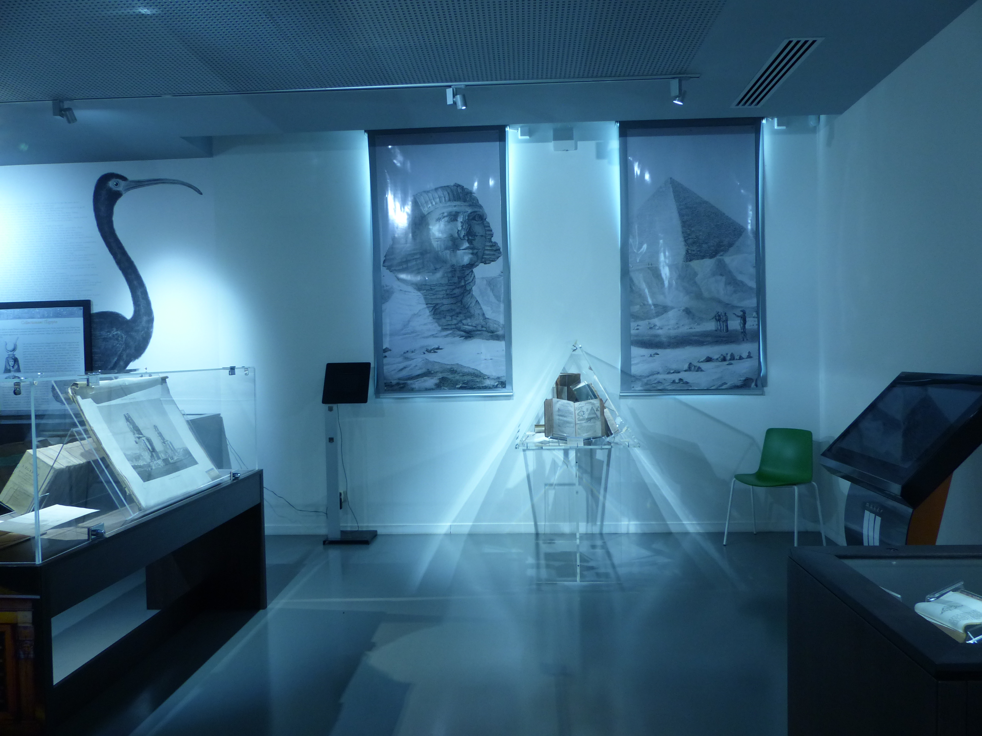 L'exposition s'intéresse à cette Égypte en papier et « en volumes », évoquée à travers quelques épisodes cruciaux : de la Description de l'Égypte, monumental reportage (23 volumes et 974 gravures) de l'expédition voulue par Napoléon Bonaparte, à l'étude de l'écriture et au déchiffrement des hiéroglyphes par Champollion en 1822, des grandes missions archéologiques à la naissance de l'égyptologie. En complément des livres, le parcours est jalonné d'images, reconstitutions et objets originaux : sphinx, pyramides, papyrus, scribes, momies, pharaons… une invitation à partager cette égyptomanie !